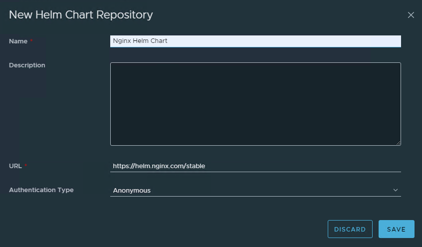 To add a helm repository, click on the “Add Helm Chart Repositories” button.