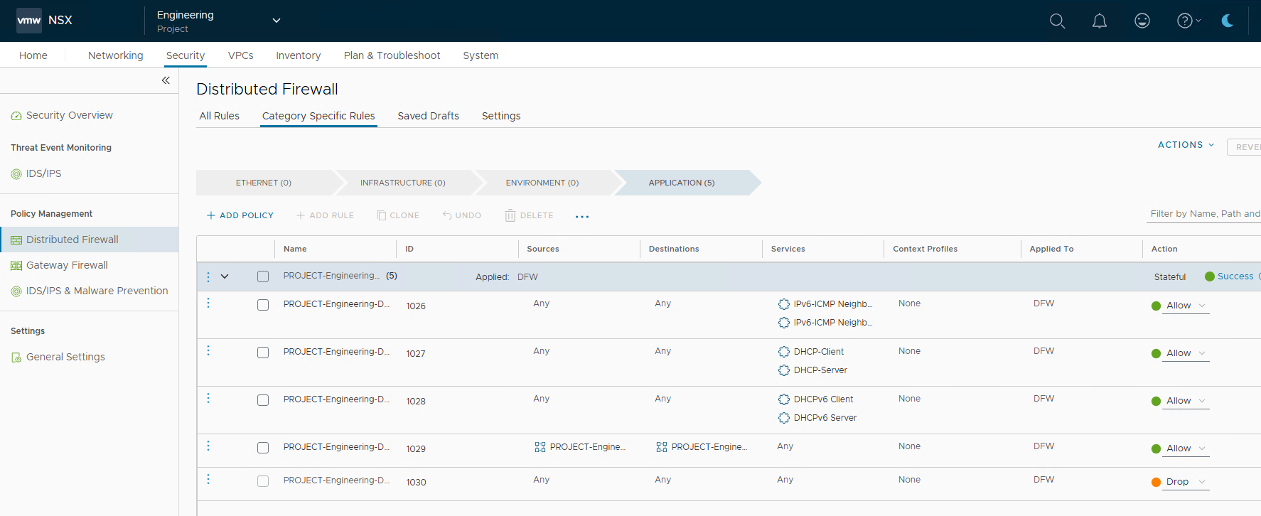 Specify the project’s name and select the tier-0 gateway and edge cluster created by the provider. Turn off the “Activate Default DFW Rules” to disable DFW for the newly created project. I will discuss this in more detail in the Project Security section later in this post.