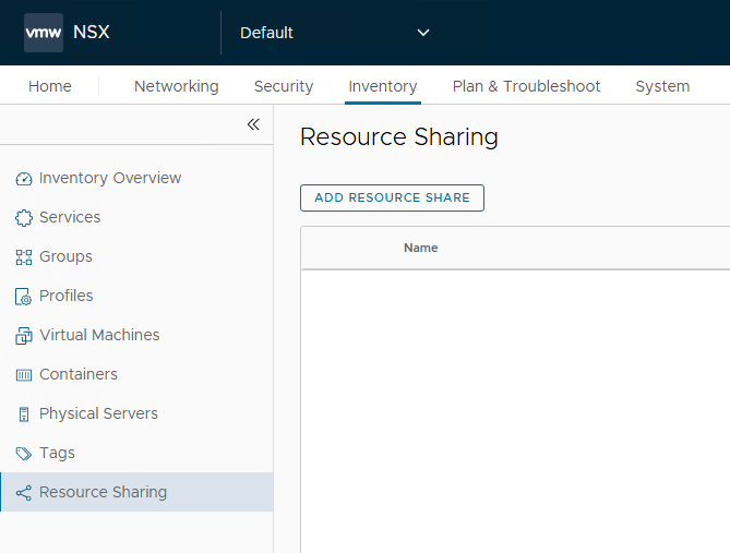 The shared resources can be viewed by the Enterprise Admin by navigating to Inventory > Resource Sharing and selecting “Default Shares of Projects“.