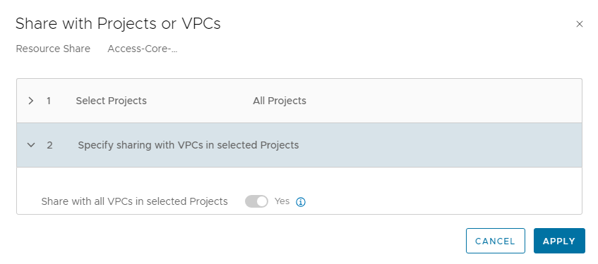You can choose to share the resource with all projects or only specific projects.