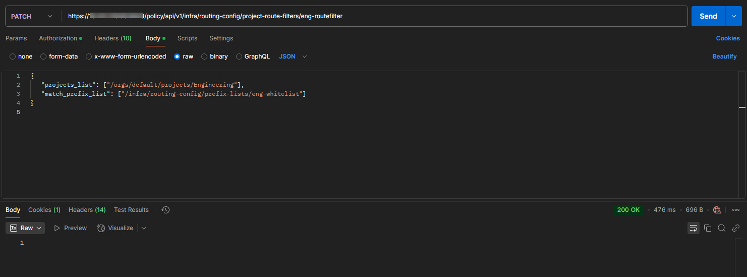 As a next step, a route filer for the project is created, and the whitelist is then associated with it. For the Engineering project, I created a route filter named ‘eng-routefiler‘.
