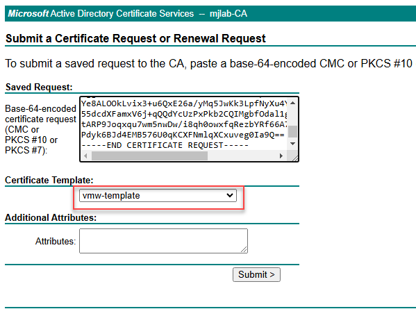 Note: The following procedure assumes that you have a Microsoft-based CA server in your production/lab environment and that the required certificate template is created as per the instructions documented here.