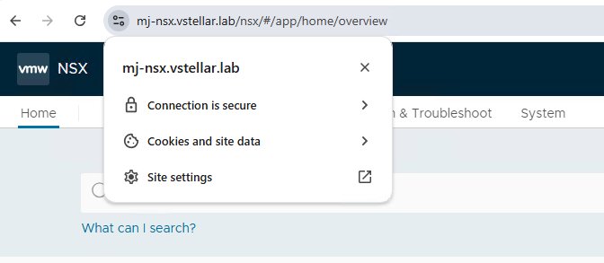 Refresh the NSX URL in the browser and validate that the certificate is applied and the certificate tab reads “Connection is secure.”