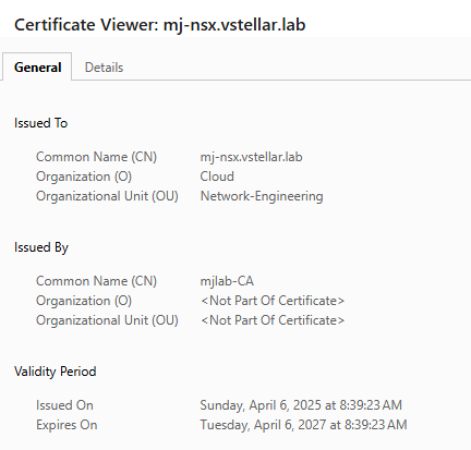 - Cluster (previously known as mp-cluster): This certificate serves as a server certificate for API/GUI clients reaching NSX cluster VIP on port 443.