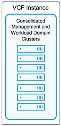 VCF also supports another topology known as the consolidated architecture. In this topology, the management domain and the VI workload domain are collapsed into a single entity, and isolation between infrastructure workloads and business workloads is achieved through vSphere resource pools. This is suitable for an environment that wants to start small and then scale out.