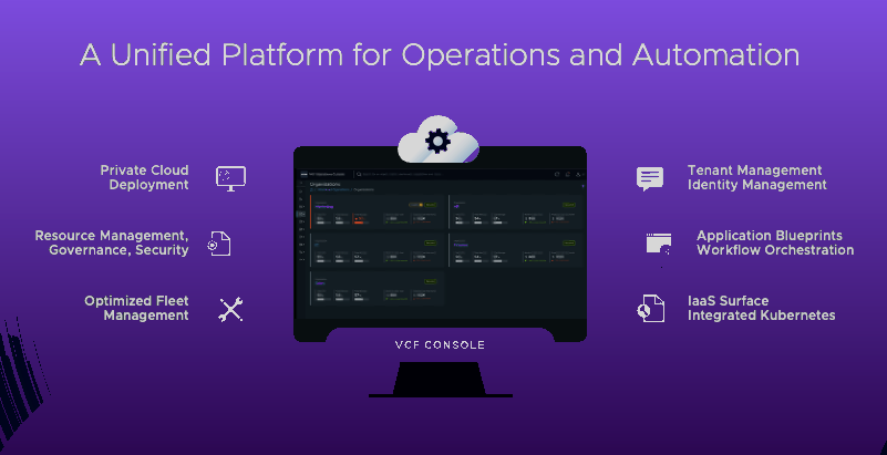 1: Streamlined Infrastructure: One Platform, Many CapabilitiesVCF 9 integrates compute, networking, storage, and automation into a unified framework. This helps two main audiences: