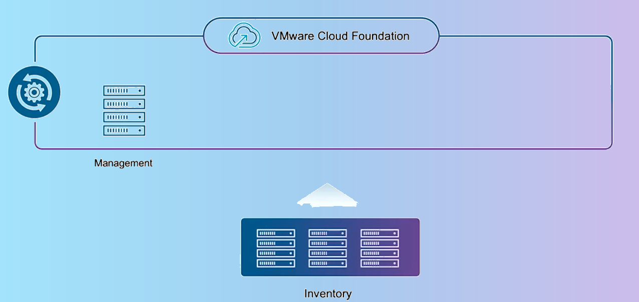 To deploy the management workload domain, you add ESXi hosts in the data center as a compute pool, represented as inventory in the diagram below.