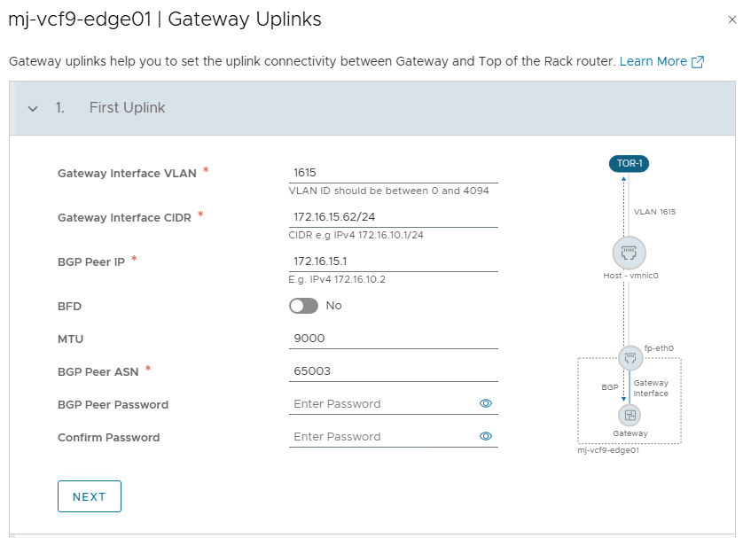 - Edge Node Name: This must match the FQDN configured in the DNS server for the NSX Edges.