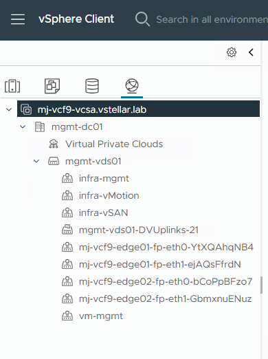 Welcome to part 4 of the VCF-9 series. The previous post in this series discussed the networking models (VPC Networking and Segment Networking) and the key differences between them. In this post, I will discuss deploying NSX Edges through a built-in wizard in the vCenter UI.
