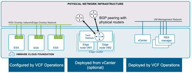 In previous VCF releases, NSX Edges were deployed through SDDC Manager using the UI/JSON. VCF-9 has introduced a newer way of deploying NSX Edge VMs, and the deployment can now be performed through vCenter UI to simplify the process, particularly for centralized external network connectivity. However, installation and configuration via the NSX Manager is still possible.