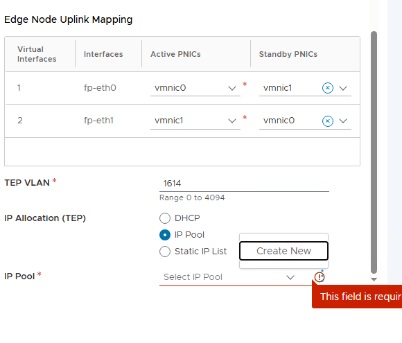 - Edge Node Name: This must match the FQDN configured in the DNS server for the NSX Edges.