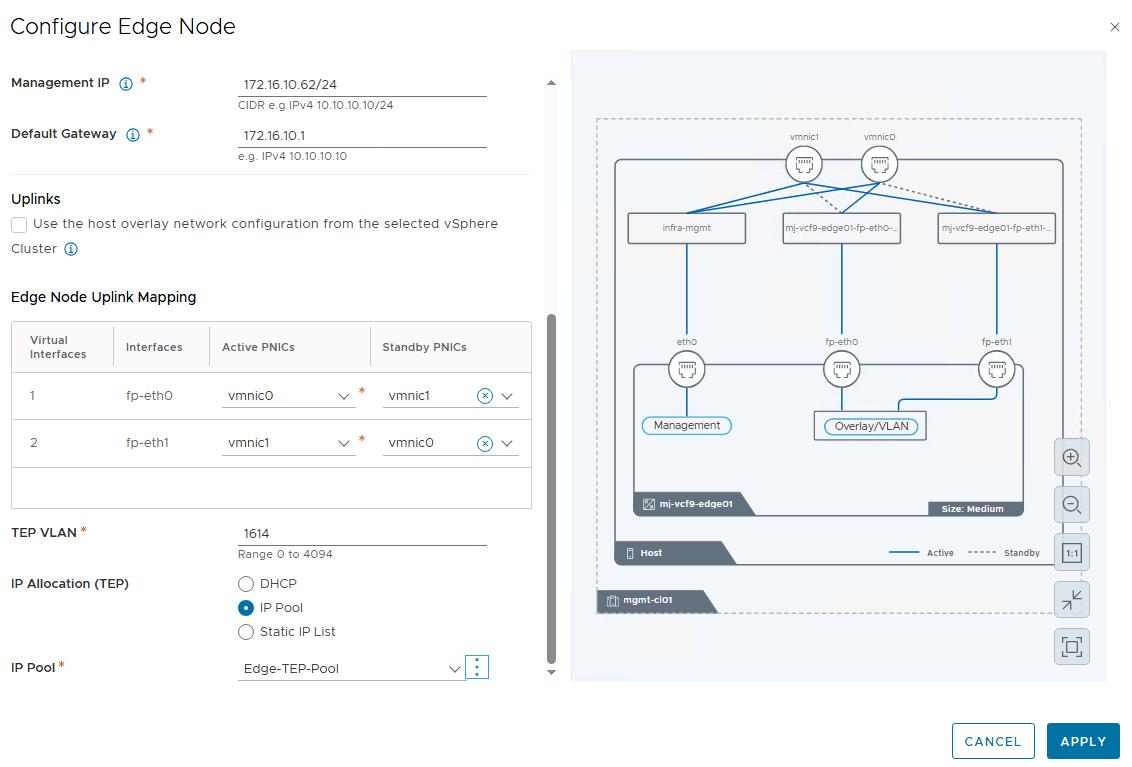 Configure the edge node uplink teaming policy and specify the Edge TEP VLAN.