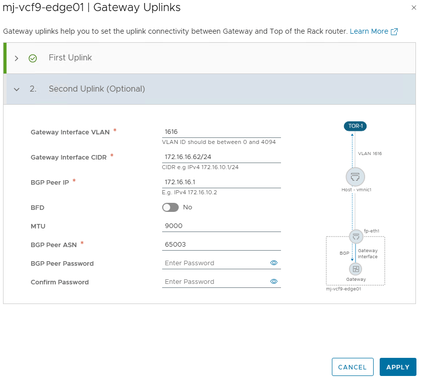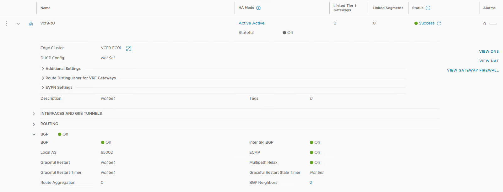 Tier-0 Gateway and BGP Configuration