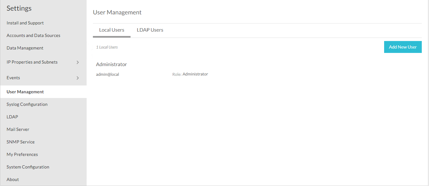 The default installation of vRNI allows you to login with the admin@local user, and this user can add new users (local and LDAP) and configure memberships and other settings of the existing users.